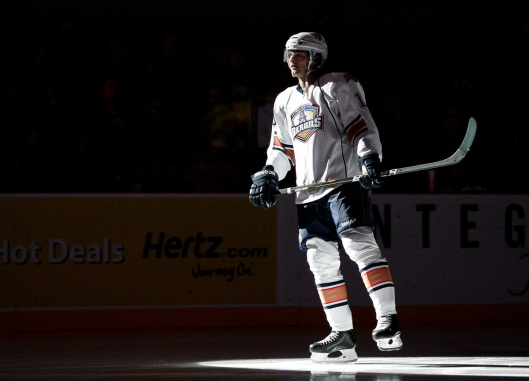 Magnus Paajarvi. Lost in the NHL shuffle and losing confidence, he embraced the demotion and played his best hockey in the final 10 games of the playoffs (10, 2-8-10). Very dangerous because of speed and with good passing skills, Paajarvi’s shot and release will need work if he’s going to play on a scoring line in the NHL.