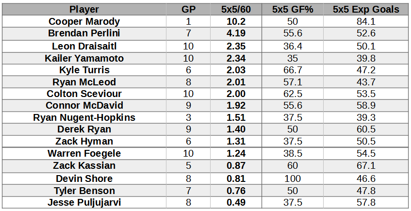 Defensively, Nurse has had a crushing six weeks, although his expected goals are in the range of expectation. Duncan Keith has flat out delivered in his minutes in the last 10 games, although there seems to be some disagreement in how much he’s playing against elites compared to other Oilers defenders.