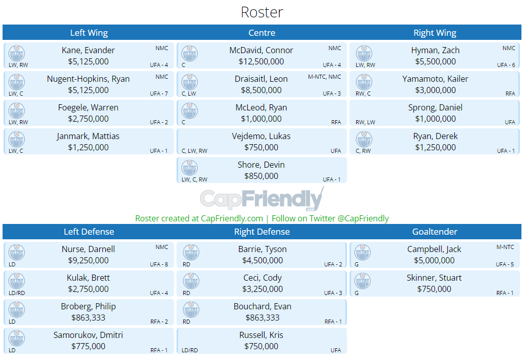 I think everyone expected Barrie and/or Foegele to be the departures until the stuff about Puljujarvi surfaced. And I don’t think his departure (if it happens) will be primarily about cap space.