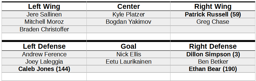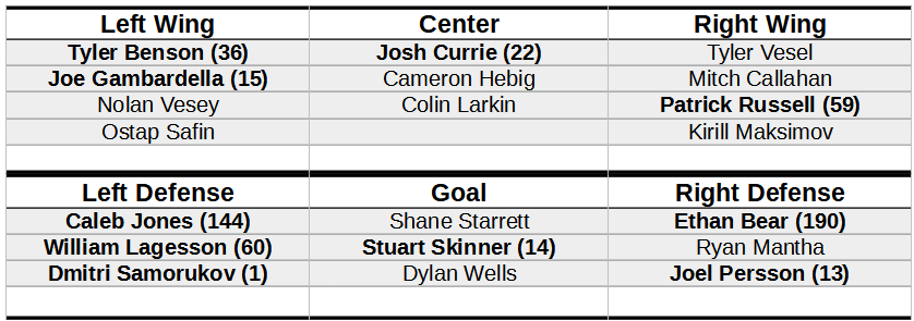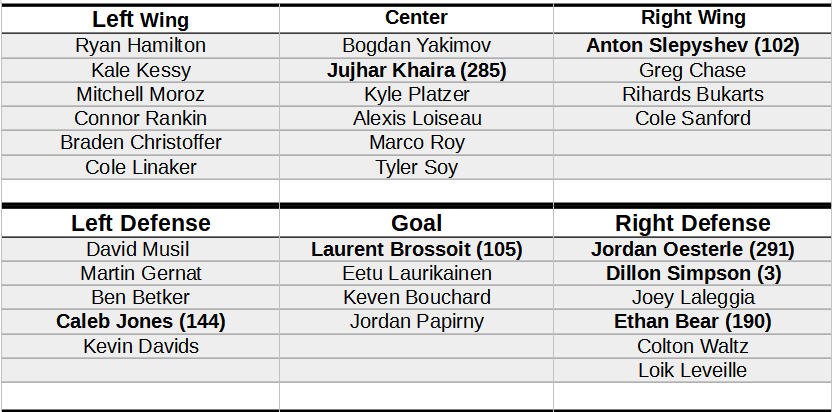 Most impressive of all, Anton Slepyshev made the opening night lineup! He played just 11 games, but he made it all the way up the depth chart in one training camp and dressed for Game One.
