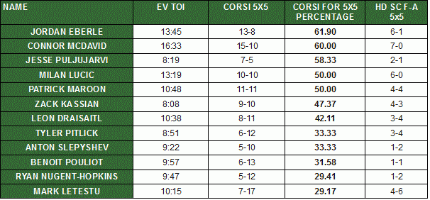 The numbers above are from an early season game from 2016-17, I wanted to see if we could agree on something. In that group, nine men still play NHL hockey. Four are still Oilers.