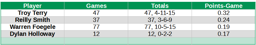 He has 6x the powerplay time of his next teammate (almost triple Bouch) and 8 mins total of PK (Bouch with 23). He’s been put in a position to succeed and is doing fairly well at it. Good for him.