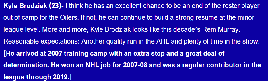 - LHD Jake Walman. I’ve mentioned him before, the numbers are good and he’d be worth the bet in my opinion. He’s effective, inexpensive and maybe he finds chem with Tyson Barrie or Evan Bouchard. A strong option.